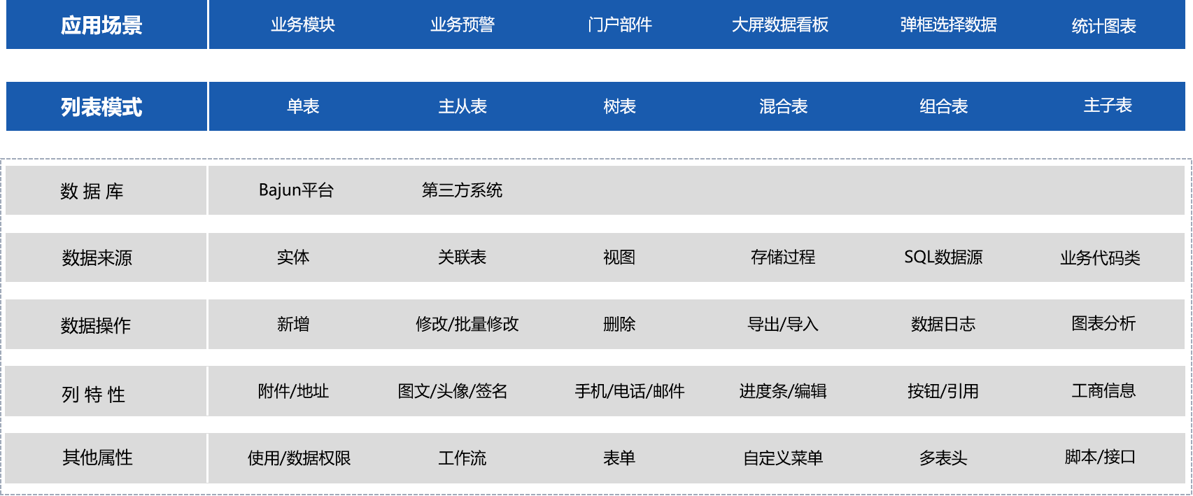 八駿平臺(tái)建模引擎支持自定義表單、單列表、主從列表、樹(shù)表、混合表、主子表、組合表等多種前端頁(yè)面展現(xiàn)方式,實(shí)現(xiàn)自由升級(jí)老功能或添加新功能。