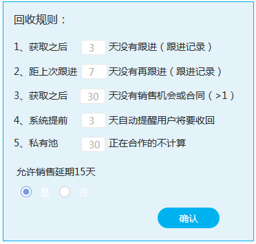 以上規則基本滿足了企業公海制度的需求,此外,針對擁有不同產品的銷售業務組,八駿CRM另有多公海功能,可以有公海A、公海B,相互之間數據不混合,相互不影響。
