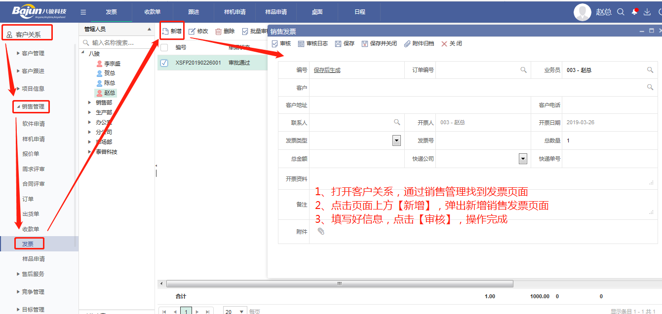 入口:客戶關系--銷售管理--發票