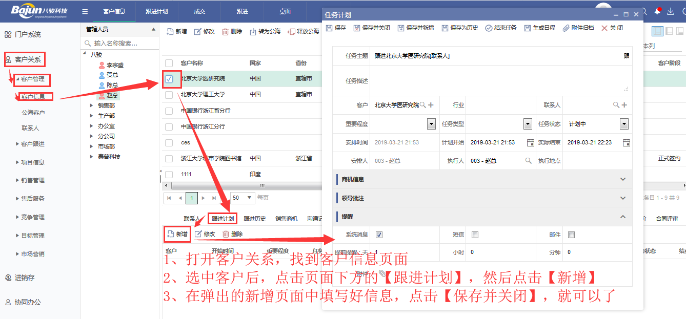 成功離不開努力,更離開事前的準備,做事前制定好計劃,往往能起到事半功倍的效果,工作也是一樣。在跟進客戶之前要提前計劃,按計劃做事,條理比較清晰。八駿CRM中就有跟進計劃的功能模塊,能夠方便快捷地幫助您完成工作,那八駿CRM系統是如何制定銷售跟進計劃的呢?