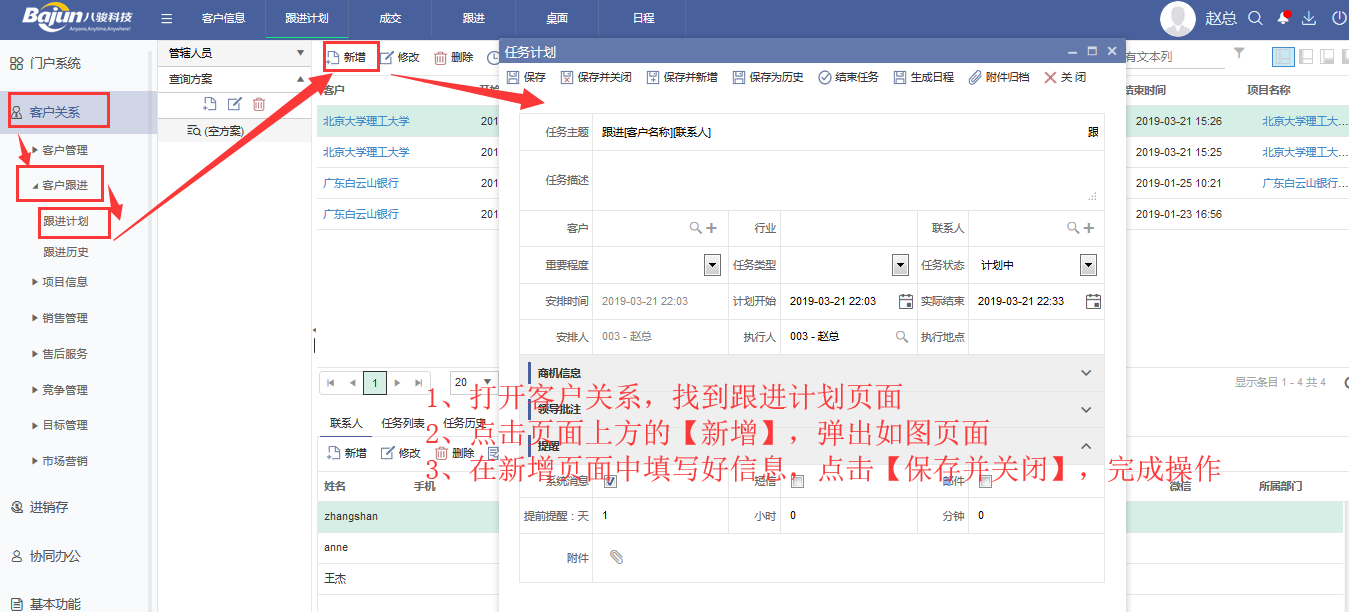 入口:客戶關系--客戶跟進--跟進計劃