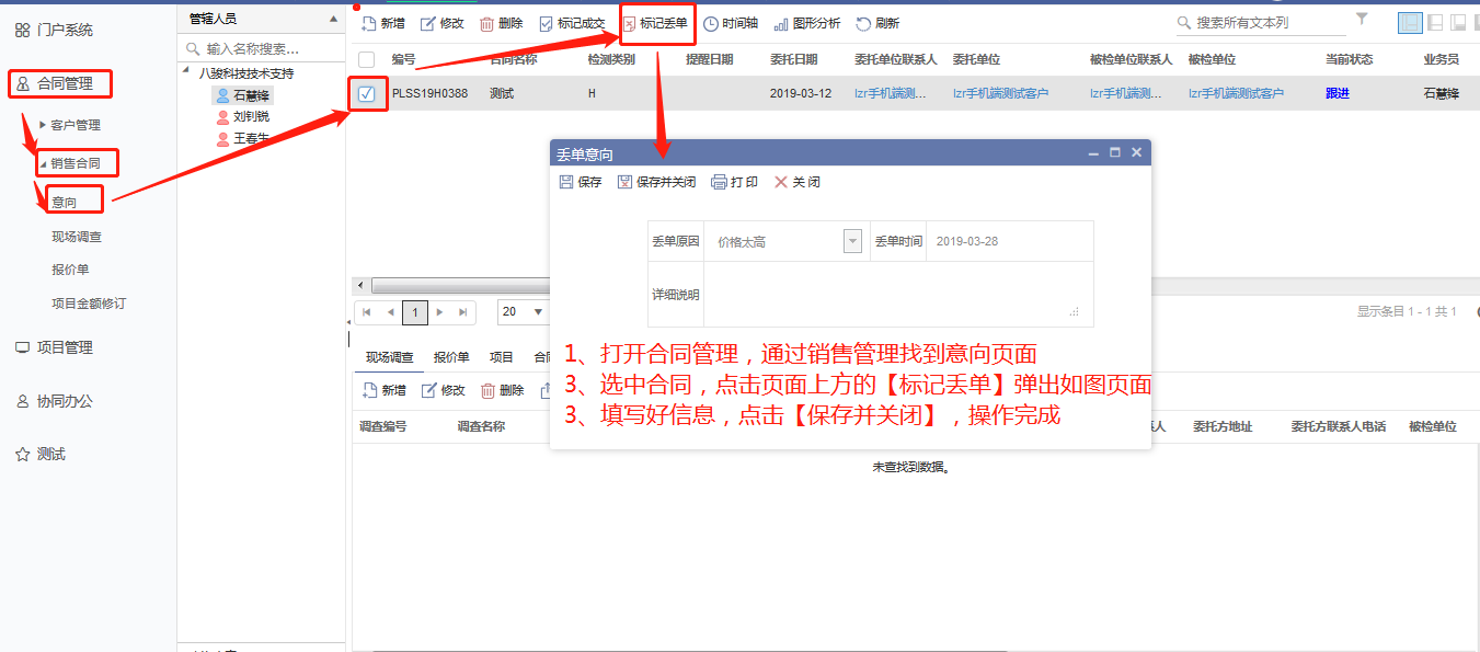 1、打開合同管理,通過客戶管理找到客戶信息頁面