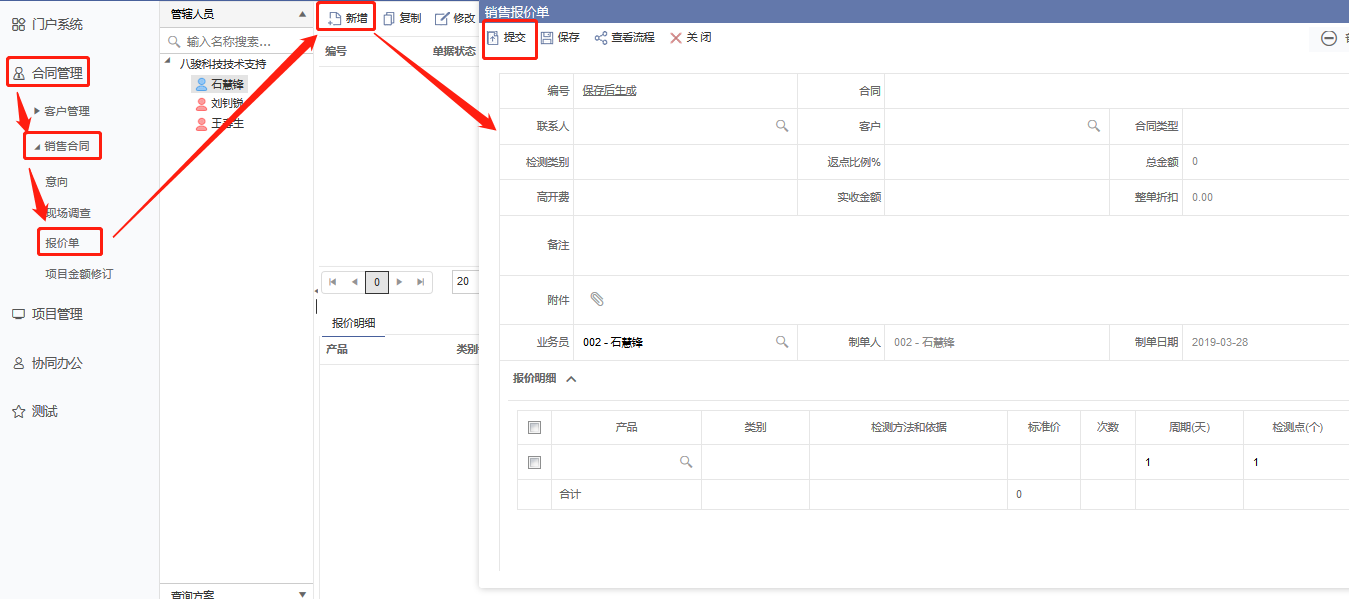 一般情況加,合同定下來(lái)后,下一步就是報(bào)價(jià)了,檢測(cè)行業(yè)CRM系統(tǒng)通過(guò)選擇對(duì)應(yīng)合同,然后選擇產(chǎn)品進(jìn)行報(bào)價(jià),通過(guò)系統(tǒng)進(jìn)行審批。本文將介紹新增銷售報(bào)價(jià)單的方法: