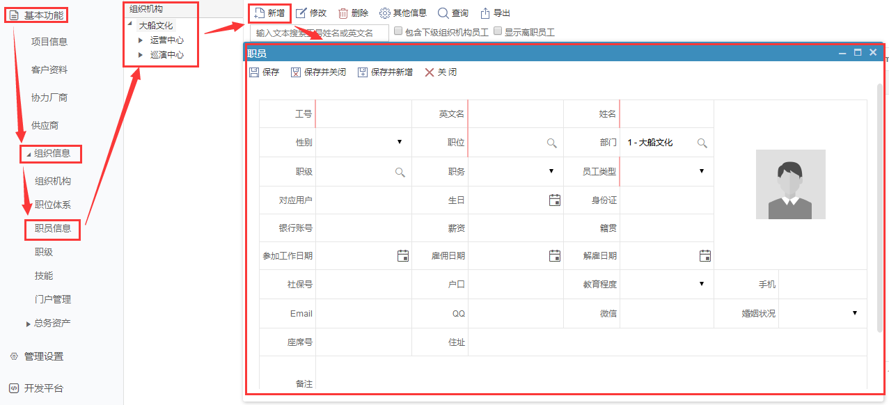1、打開基本信息,根據(jù)組織信息找到職員信息頁面