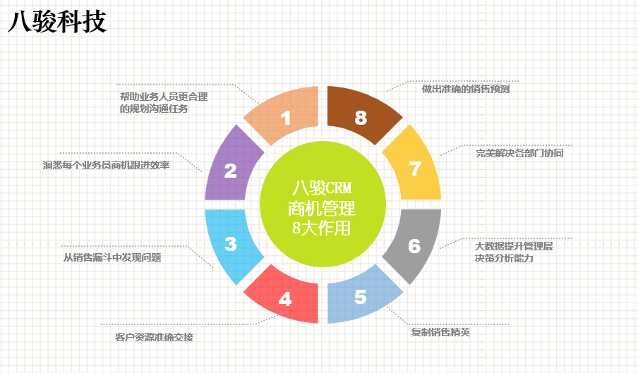 八駿CRM讓企業從8個方面精細管理商機階段,熟練掌握原理并充分運用好它們,一定會有效促進銷售業績的增長。