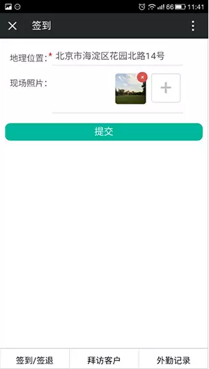 點擊“簽到簽退”,系統將實時定位地理位置(該定位不可更改),并要求上傳現場照片,點擊“提交”即可完成簽到或簽退。